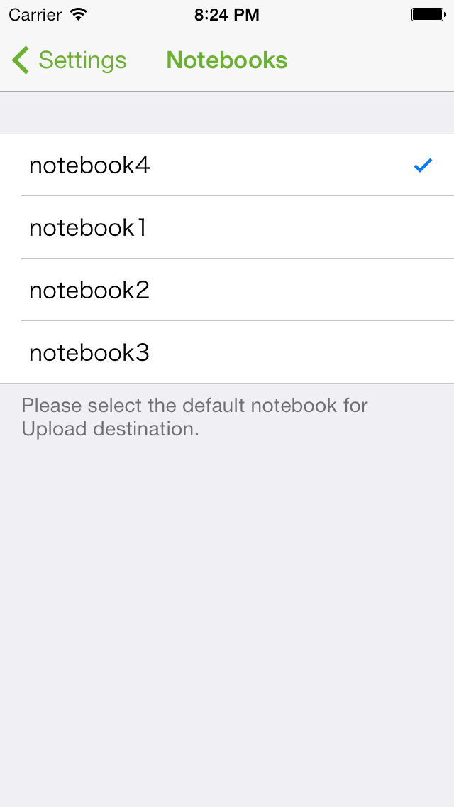 Of the setting screen I "Notebooks Selection" tap.